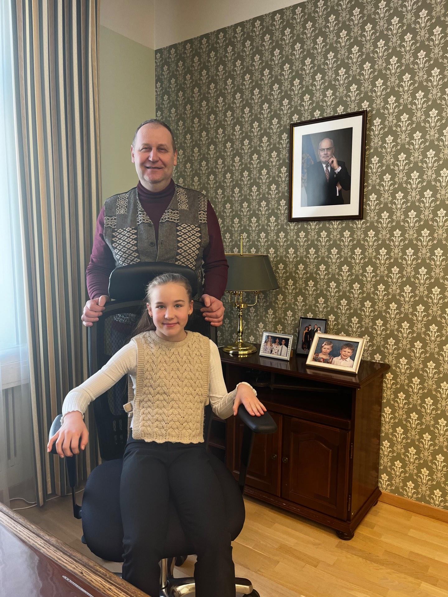 * Claudia käis Maaeluministeeriumis taimekaitse valdkonna peaspetsialist tööga tutvumas. „Kõige rohkem meeldis mulle, et sain kohtuda maaelu ministri Urmas Kruusega ning istuda ministri toolil. Tema kabineti taga olid trummid, mida sain ka mängida.“