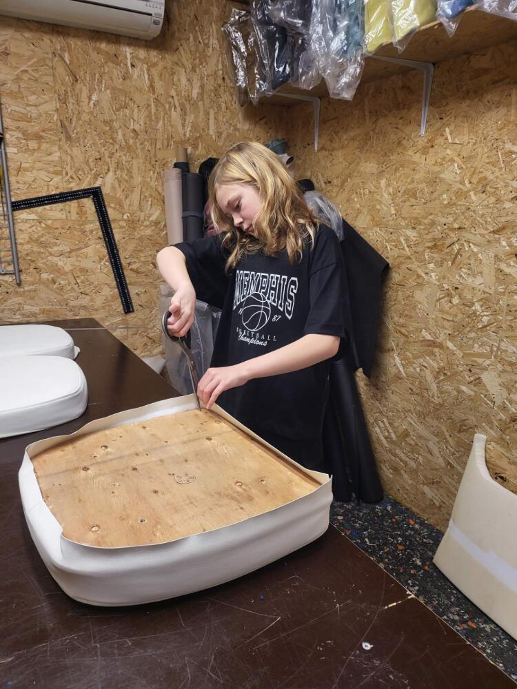 * Töökohas räägiti kõigepealt ohutusest ja reeglitest. Õpilased said kasutada õpitud teadmisi matemaatikas. Ehituse juures oli vaja arvutada pindala ja ümbermõõtu. Õpiti ka sirgelt detaile välja lõikama ning diivaninööpe valmistama.