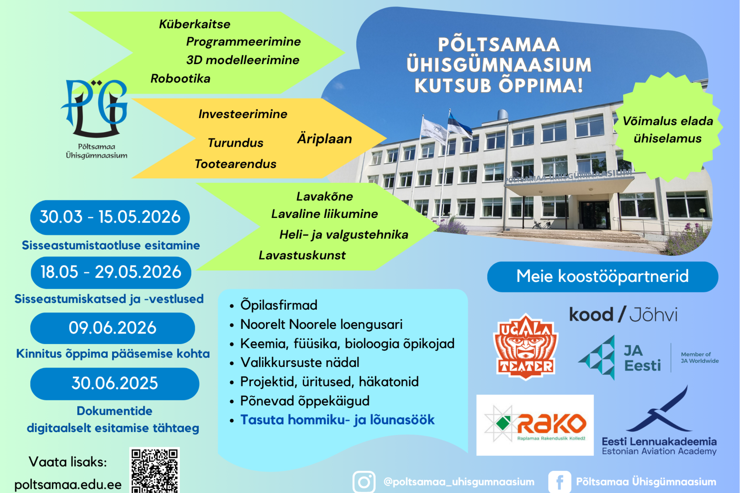 30.03.-15.05.2026 - sisseastumistaotluste esitamine - LINK link opens on new page.