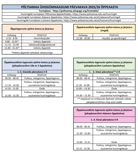 | Huviringide tunniplaan Põltsamaa õppekohtades |