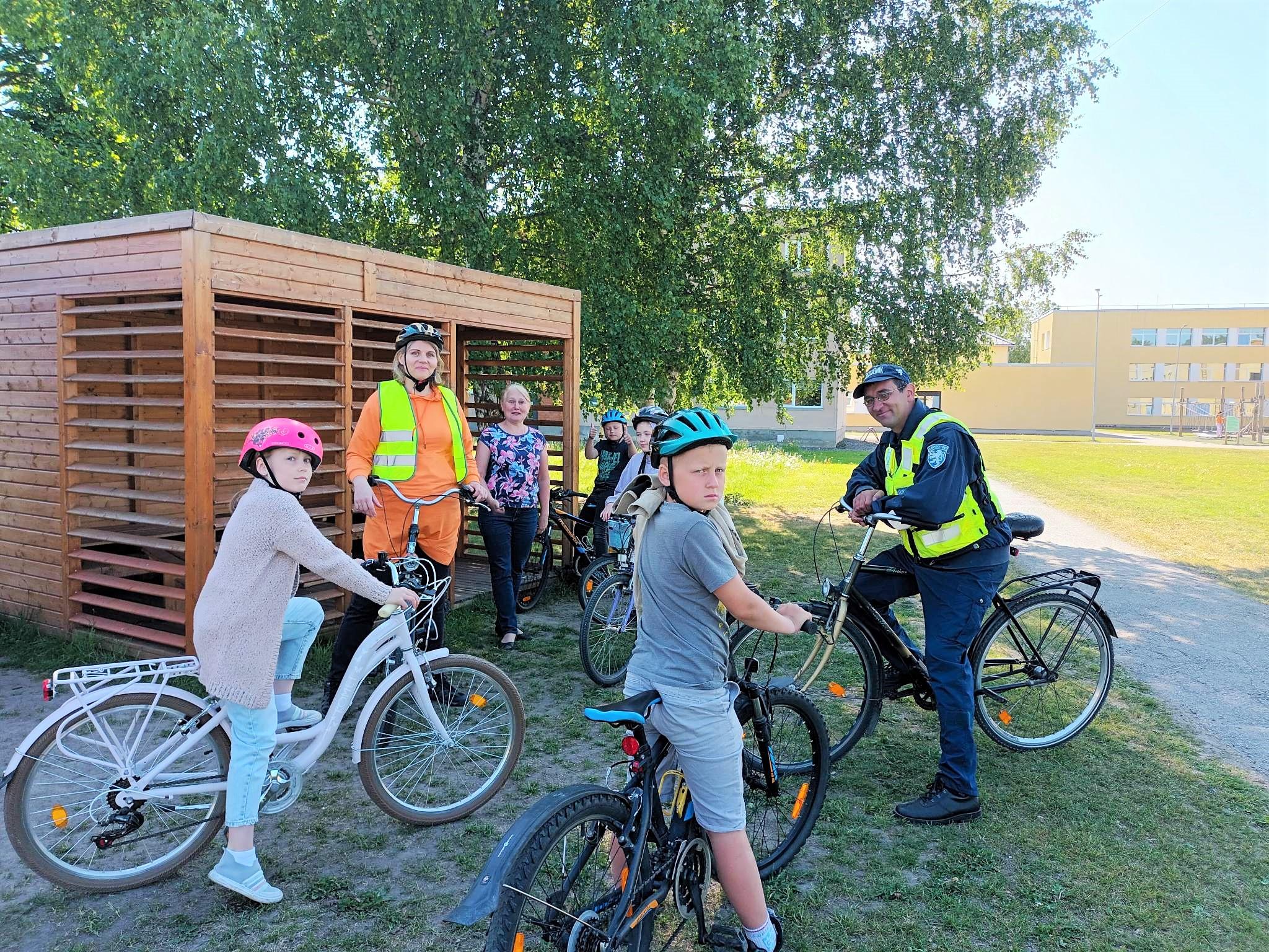 Jalgrattajuhiloa eksamil olid kohal ka piirkonna politseinikud. „Meid kui politseid kutsuti appi läbi viima jalgrattajuhiloa eksamit,“ selgitas Kadri Mitt. „On oluline, et kõigil, kes liikluses osalevad, oleksid vajalikud teadmised ja oskused liikluses käituda ning tunda liiklusmärke, et turvaliselt punktist A punkti B. Et nad oskaksid ennast kaitsta ja arvestada ka kaasliiklejatega,“ põhjendas piirkonna politseinik eksami vajalikkust.