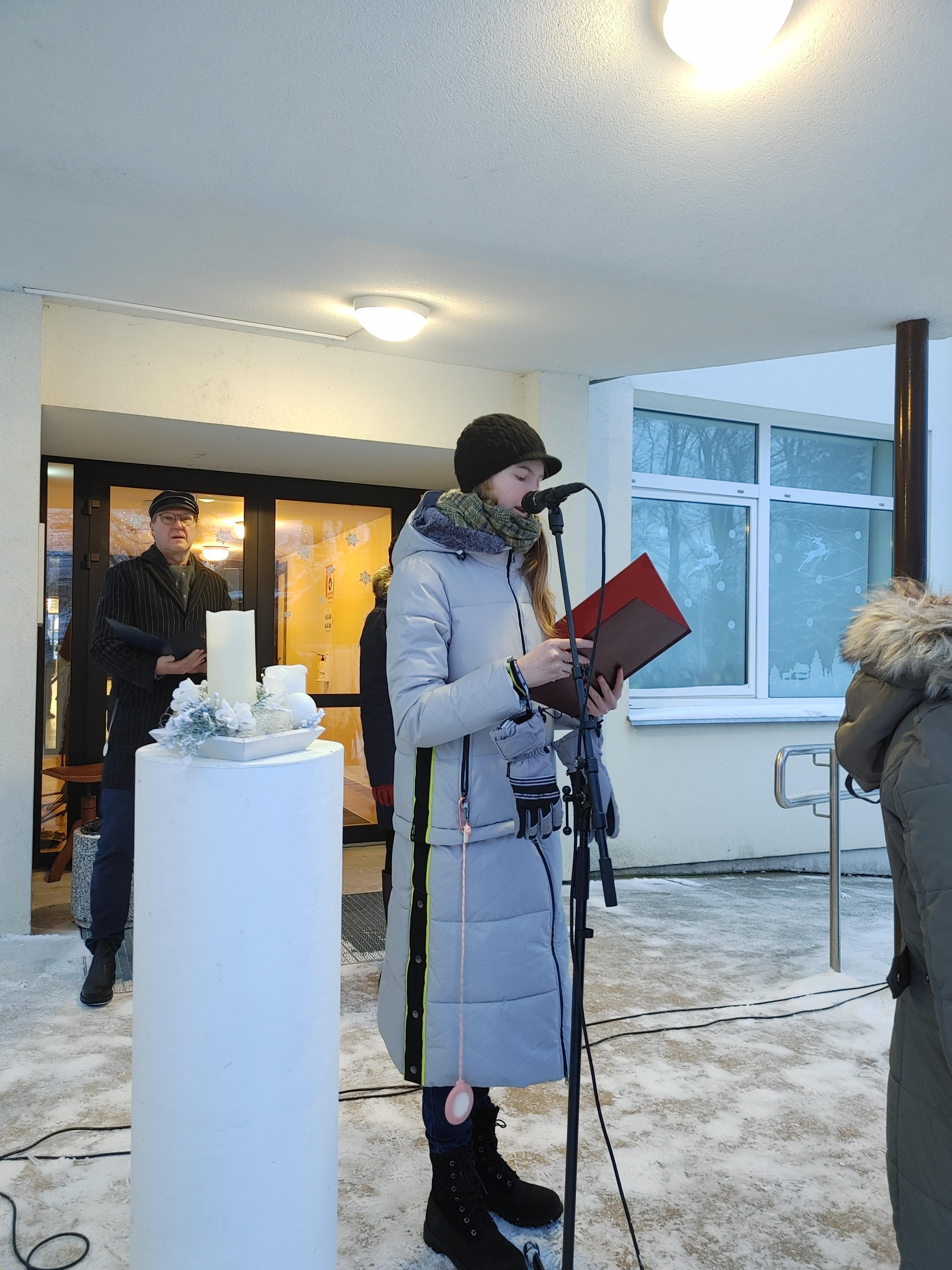 Täna, 30. novembri hommikul toimus Põltsamaa Ühisgümnaasiumi Veski tn koolimaja ees 6. - 12. klasside õpilastele jõulukuu avamine ja jõulurahu väljakuulutamine.