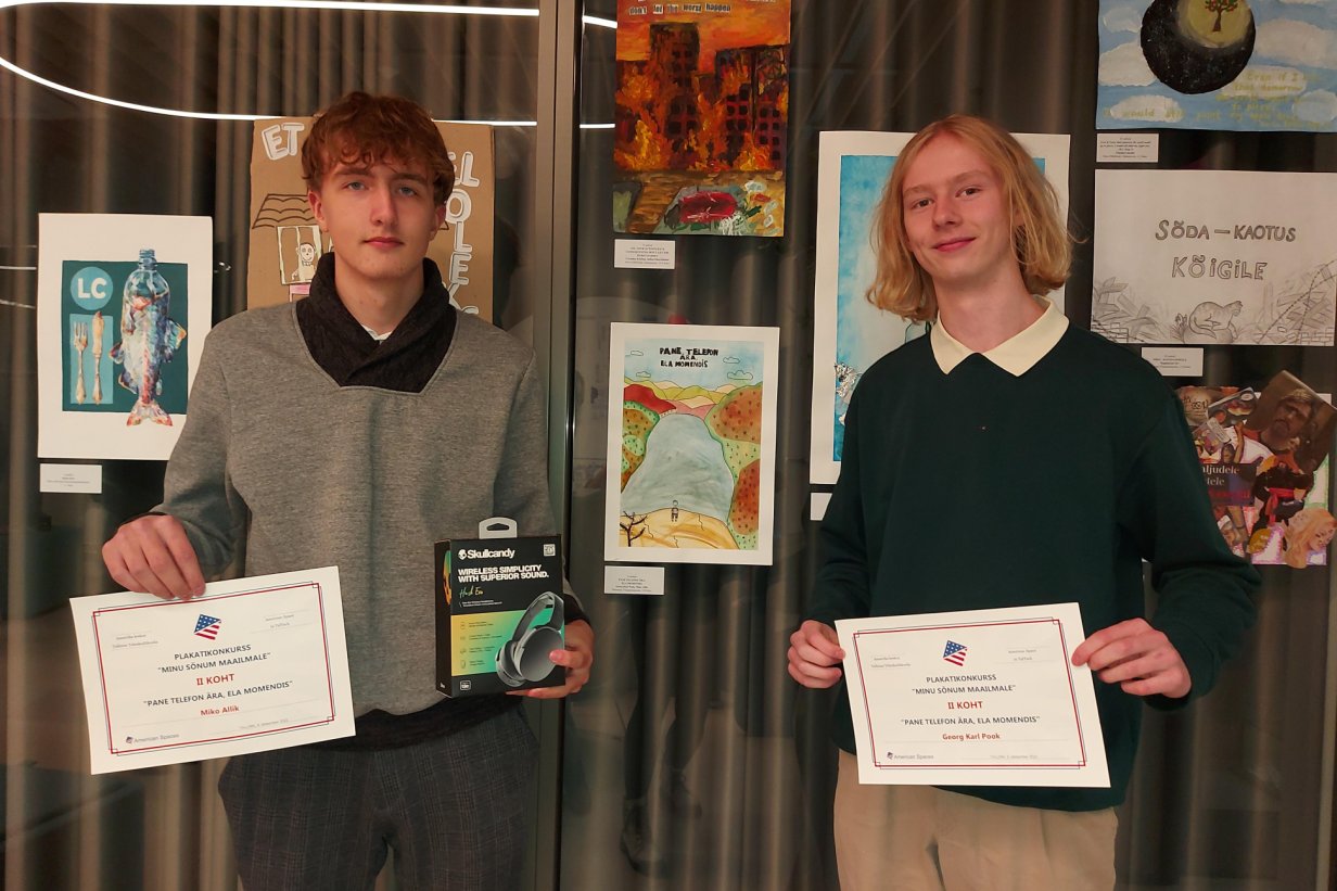 Georg Karl Pook ja Miko Allik (9. B) võitsid põhikooli vanusegrupis ühise plakatiga „Pane telefon ära, ela momendis“ teise koha. Plakat valmis õpetaja Margit Randmaa kunstiõpetuse tunni raames.