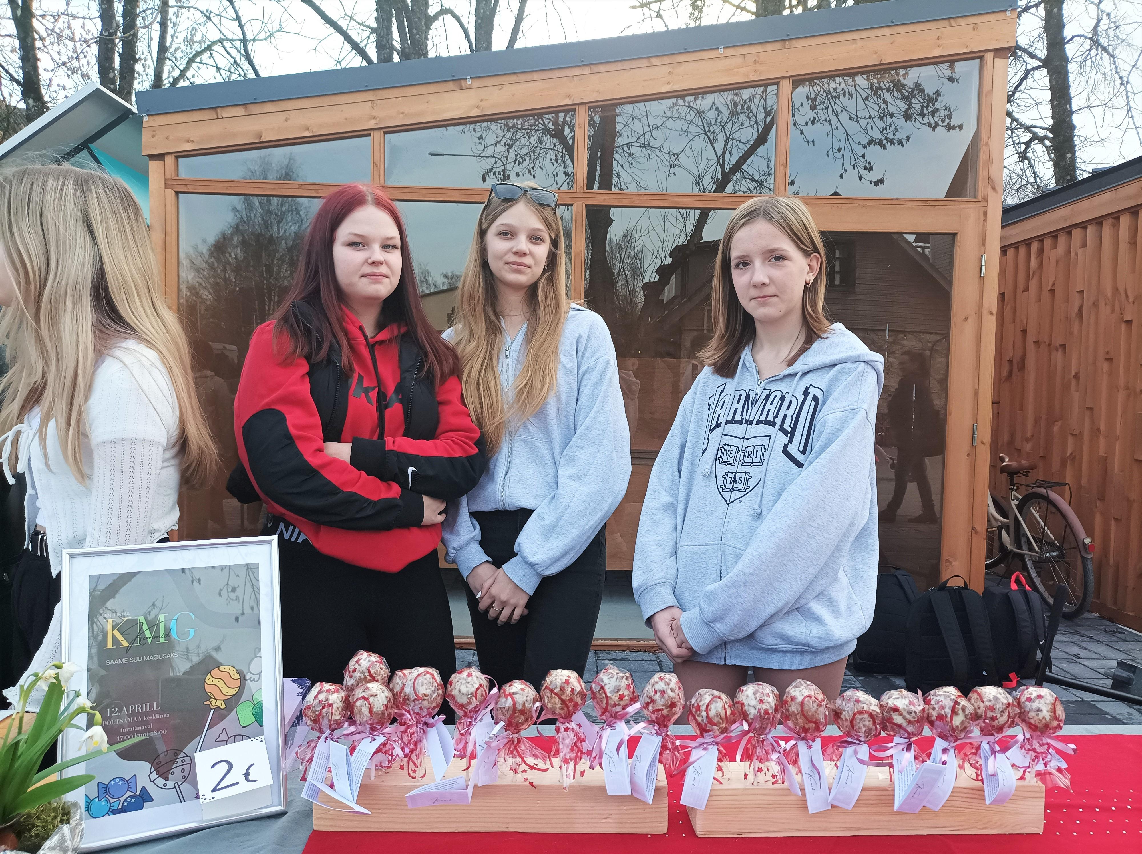 Grete Heleen, Mja ja Kertu müüsid Kommid KMG nime all käsitöökomme, mis on valmistatud karamellist, küpsistest ja šokolaadipudist. Ettevõtte hüüdlause on: Saame suu magusaks! Kuidas oma toodang maitseb? „Väga hästi,“ kõlas alustavate ettevõtjate üksmeelne vastus.
