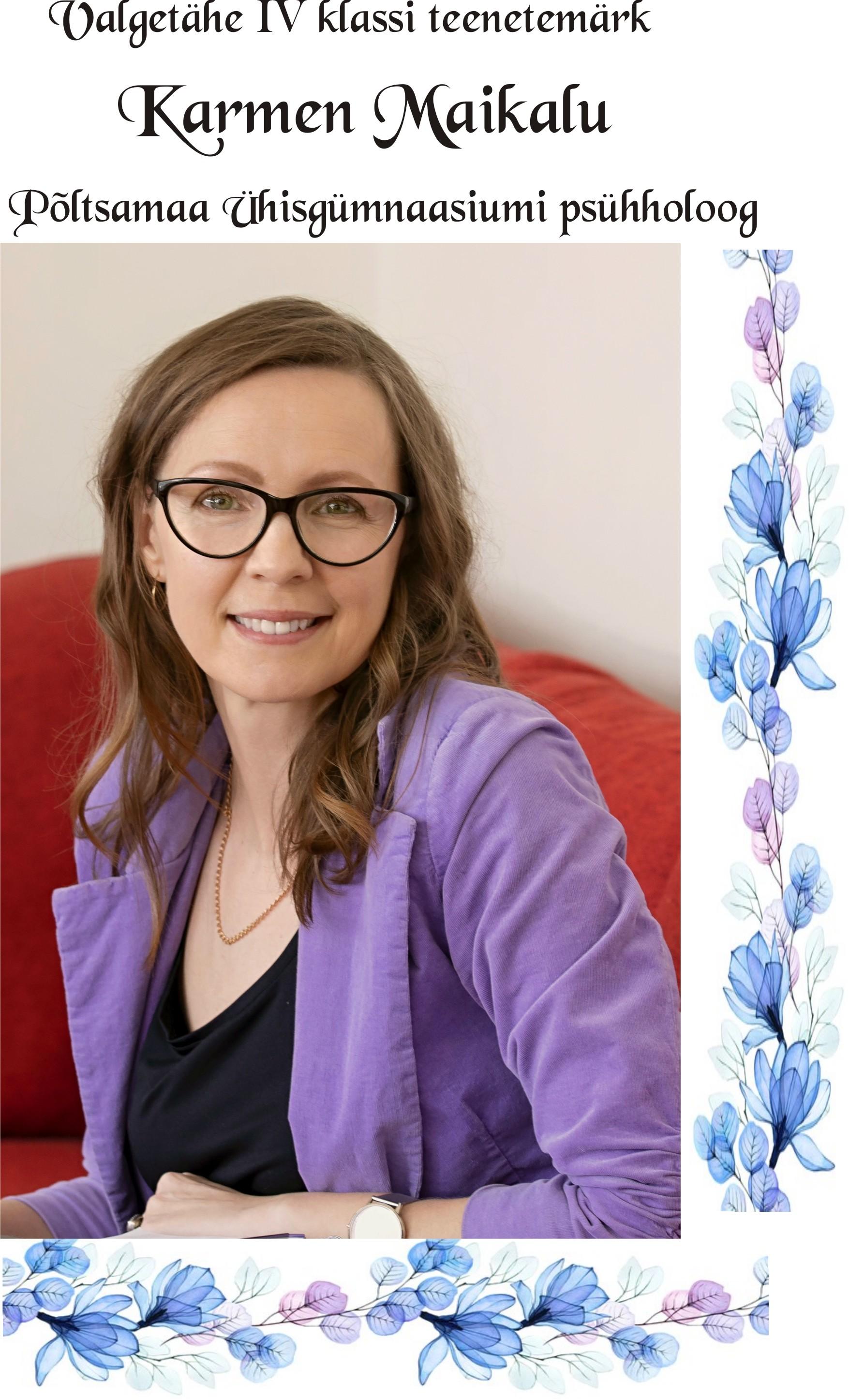 "Iseseisvuspäeva eel tänas Eesti Vabariik oma teenetemärkidega inimesi, kelle sihikindlus, ennastsalgavus, pühendumus, leidlikkus või looming on eeskujuks paljudele teistele ning on muutnud kogu Eesti paremaks, hoolivamaks, märkavamaks, ettevõtlikumaks," kirjutas president Alar Karis riigi teenetemärkide andmise otsuse eessõnas. Teiste hulgas sai Valgetähe teenetemärgi laste vaimse tervise ja heaolu üks eestkõneleja, Põltsamaa Ühisgümnaasiumi psühholoog Karmen Maikalu.