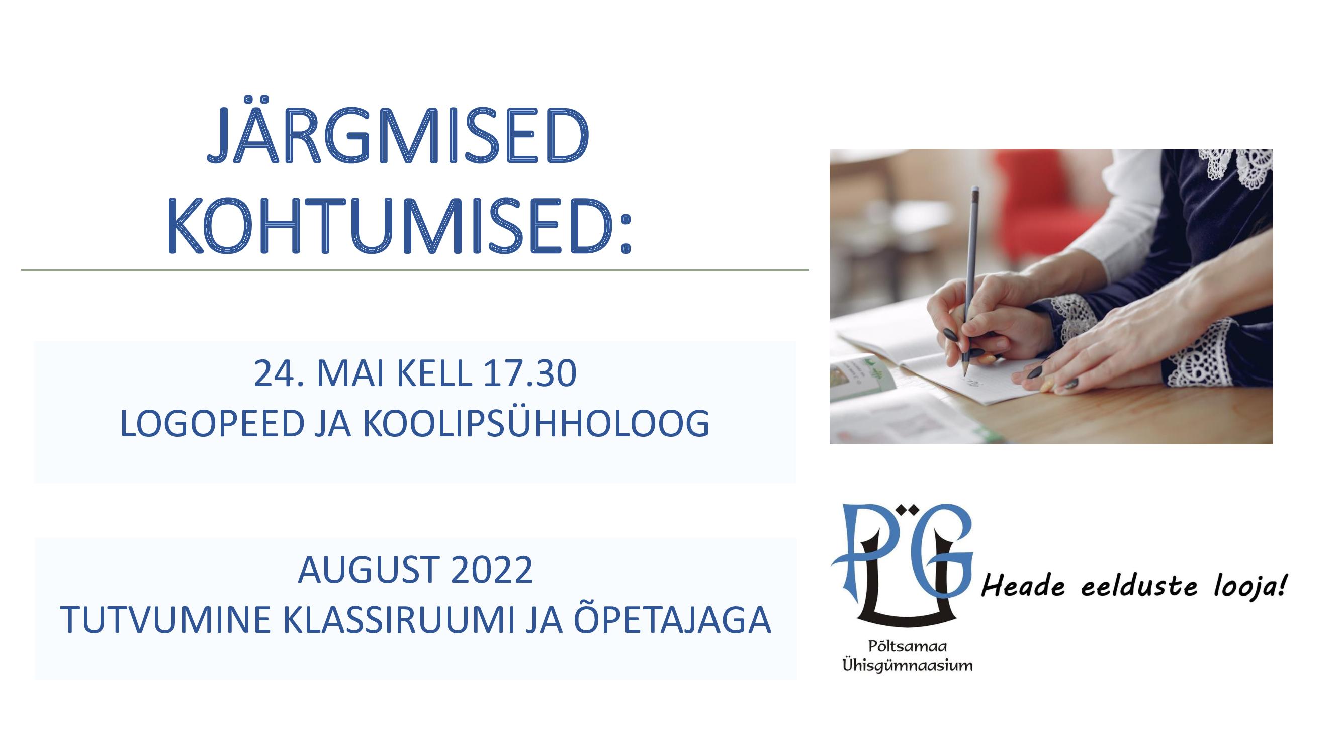 - 24. MAI KELL 17.30 LOGOPEED JA KOOLIPSÜHHOLOOG