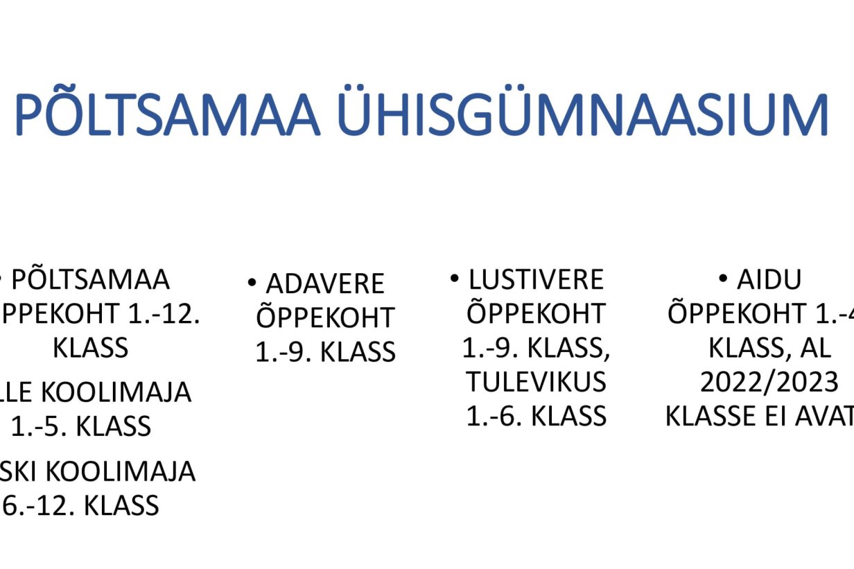 TERE TULEMAST PÕLTSAMAA ÜHISGÜMNAASIUMISSE