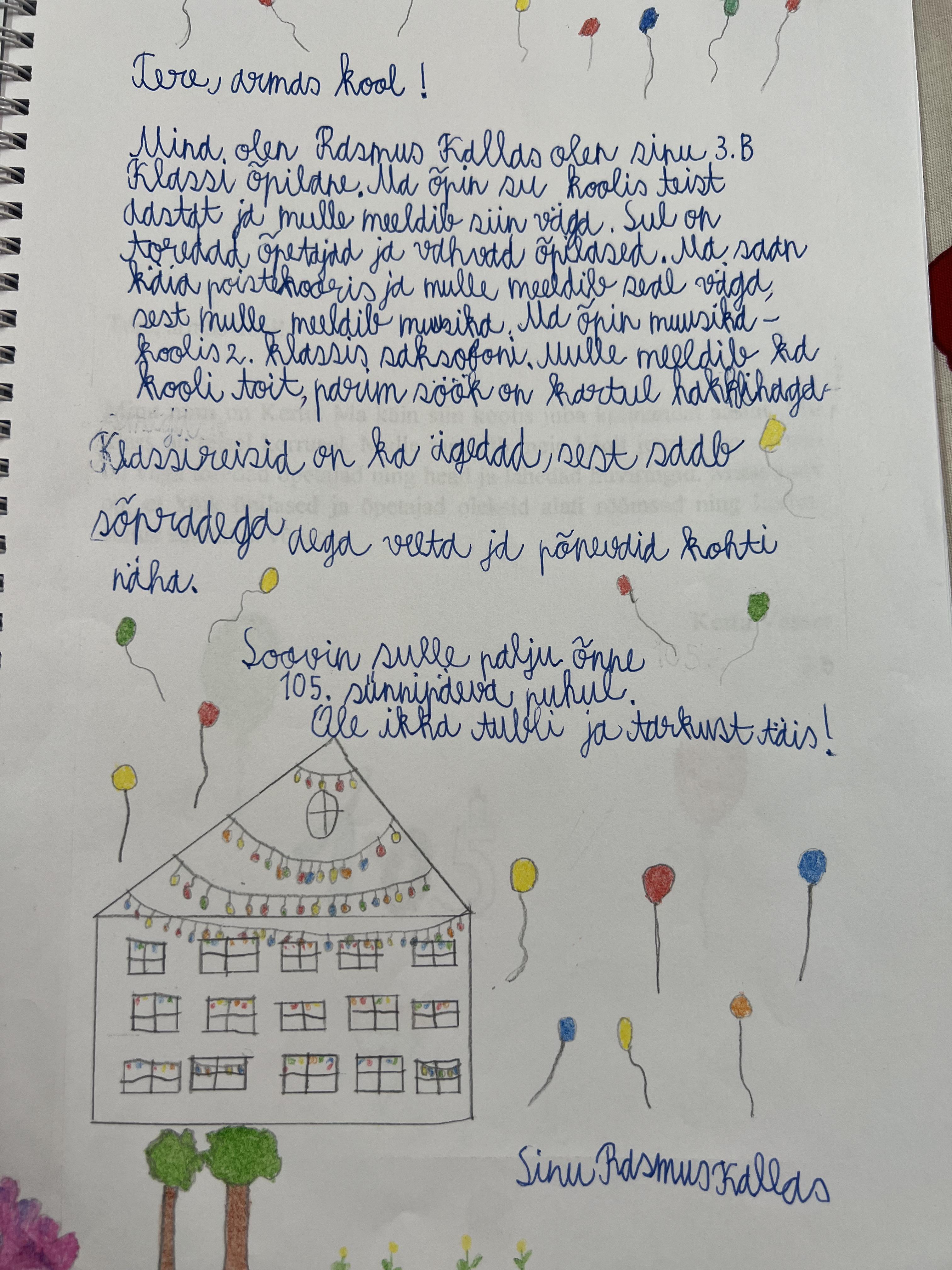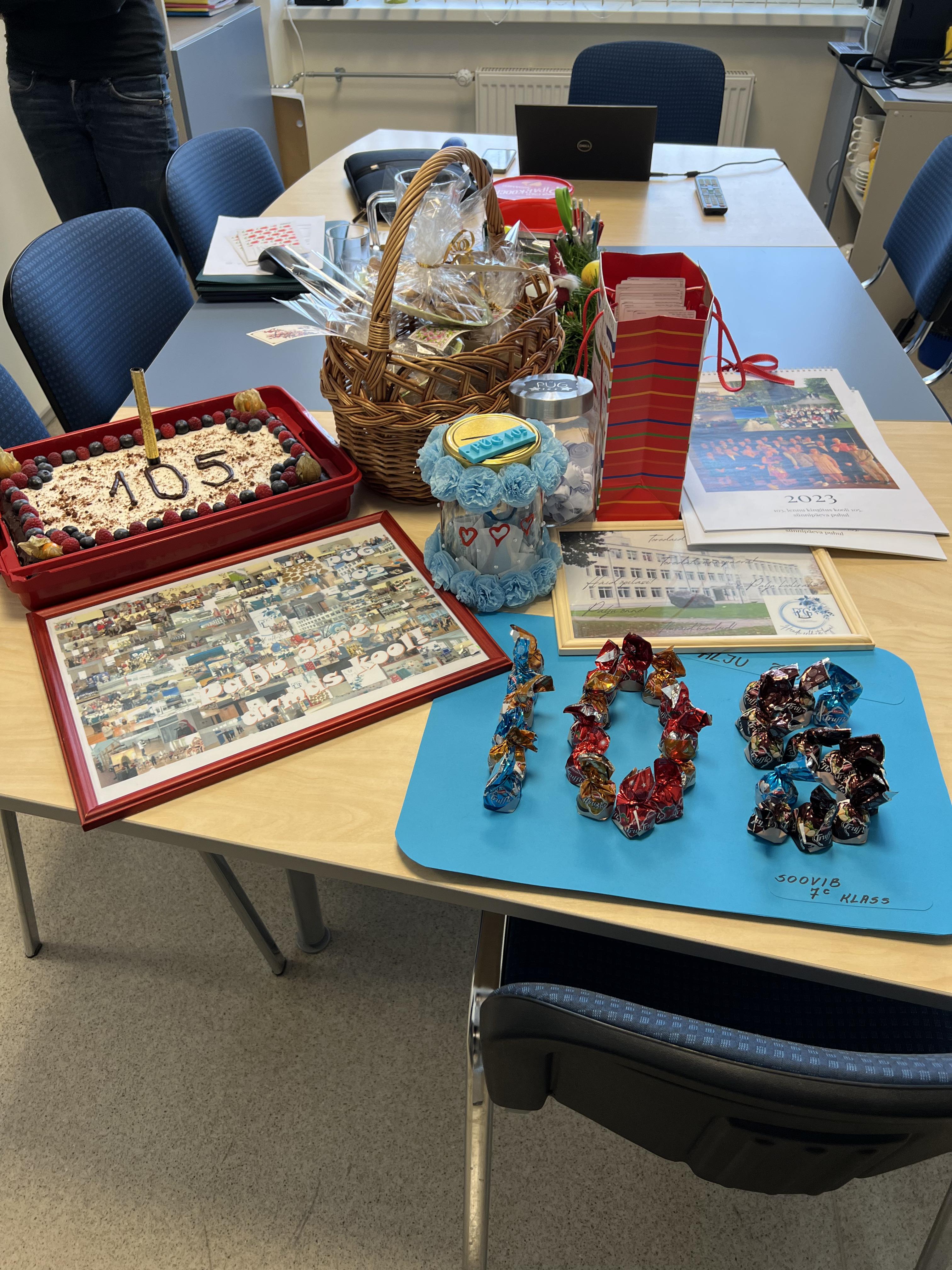 Kingituste tegemisel said õpilased ja õpetajad rakendada oma loovust ning jätsid killukese endast kooli ajalukku. Kooli 105. sünnipäeva puhul valmisid kingitustena näiteks matemaatika töölehed, õpilaste kirjutatud luuletused ja lood, piparkoogid kaasõpilastele, kommidest kujundatud 105, õpilaste fotodega 2023. aasta kalender, heade mõtete purk, õpilaste 105 käejäljest moodustatud kuusepuu kujutis koos heade soovidega (Lustivere õppekoht), soovide puu 105 (Adavere õppekoha soovid avanevad vaataja nutitelefonis, sest on peidetud QR koodi abil), fotokollaaž kooli sündmustest ja 105 kirjutusvahendit.
