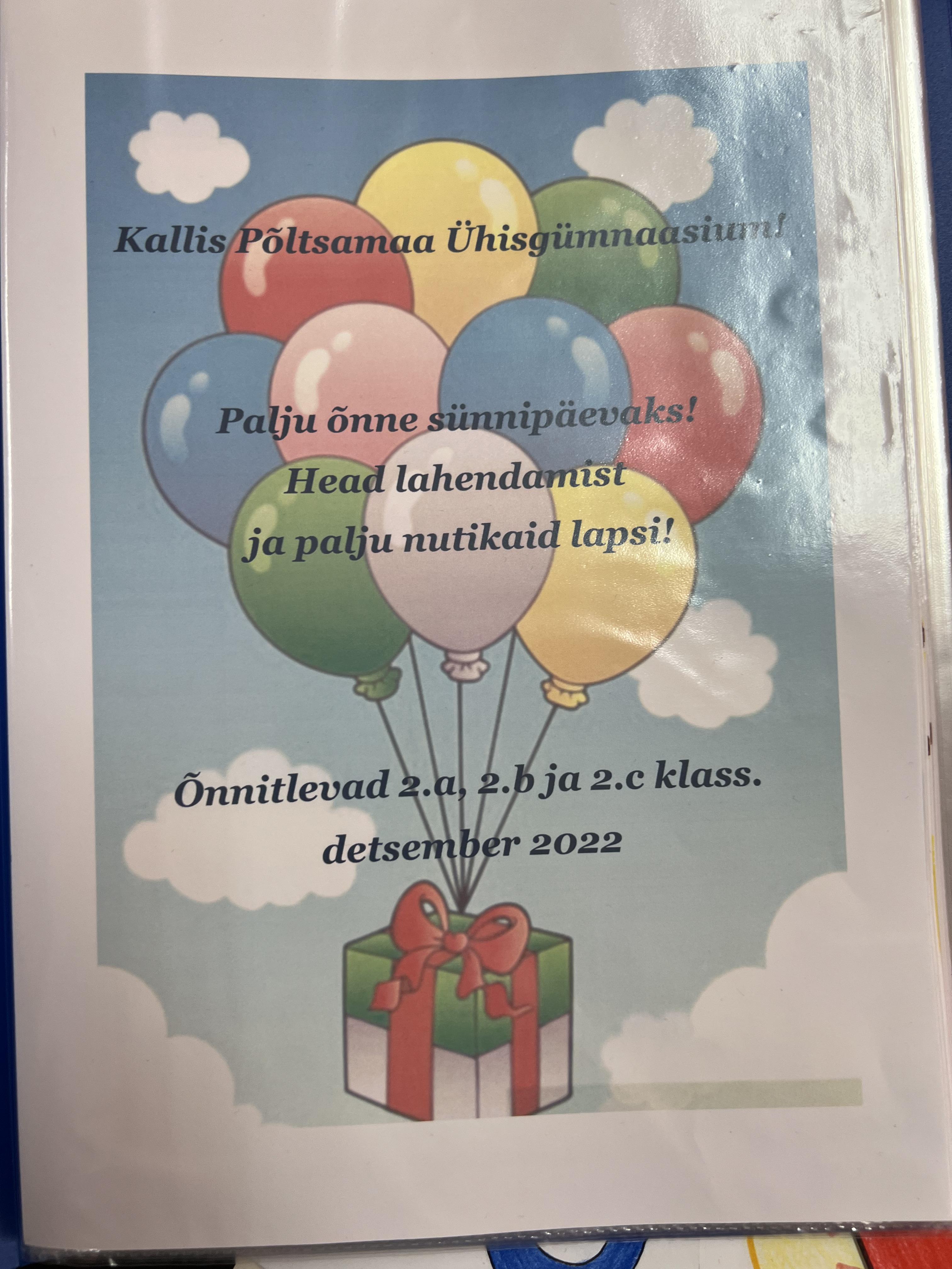 15. ja 16. detsembril andsid Põltsamaa Ühisgümnaasiumi õppekohtade õpilased ja õpetajad kooli 105. sünnipäeva puhul direktor Aimar Arulale üle kingitused. Kingitused pidid sisaldama märksõna "105".
