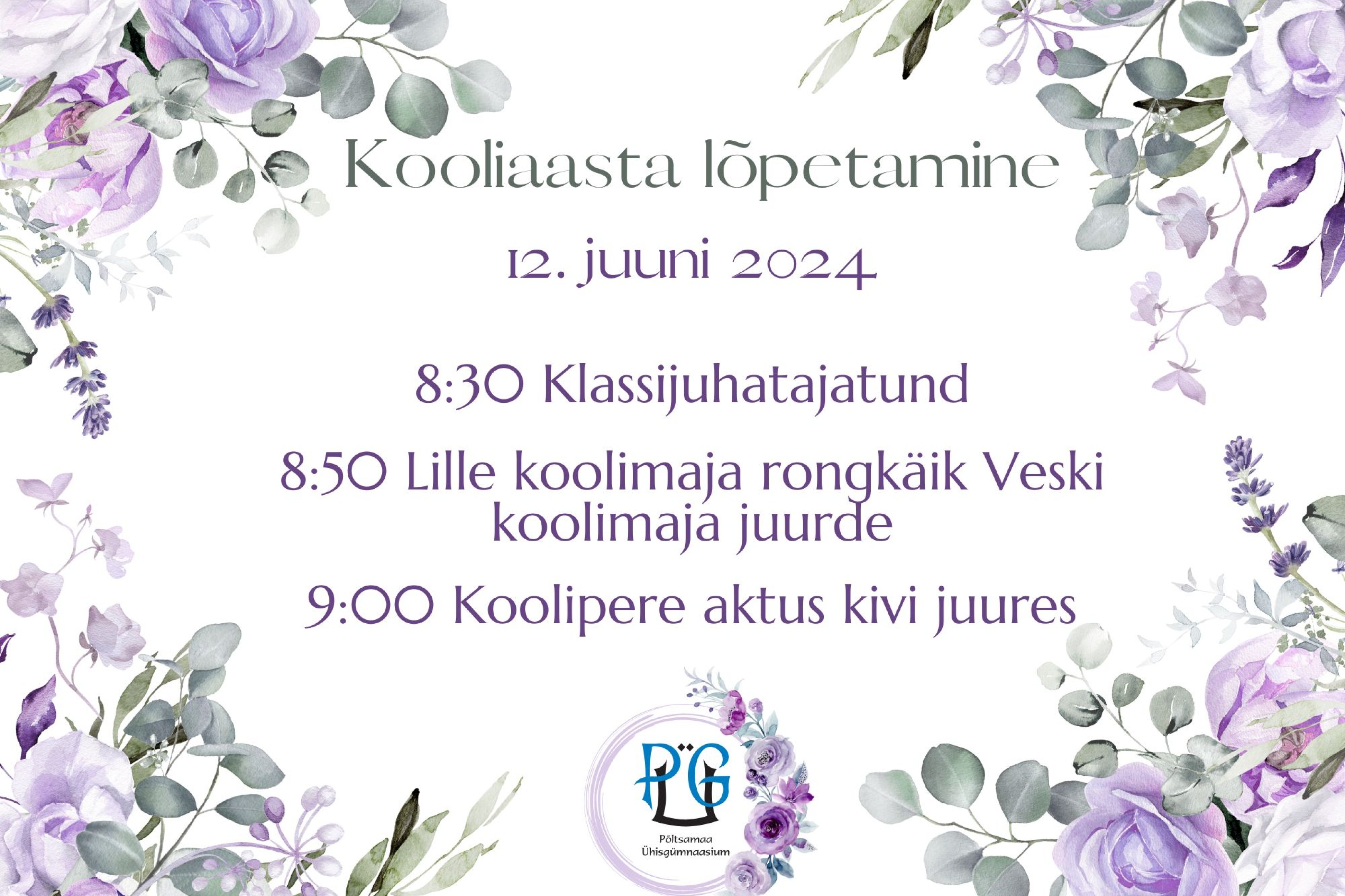 1.-8.klassi ja 10.-11.klassi kooliaasta lõpetamine 12.juuni 2024.